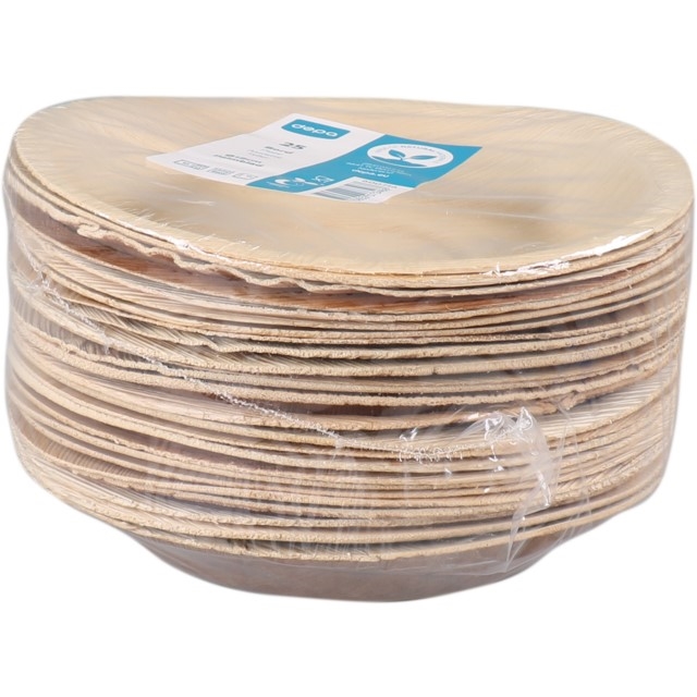 DEPA Bord, rond, 1-vaks, palmblad, Ø18cm, naturel